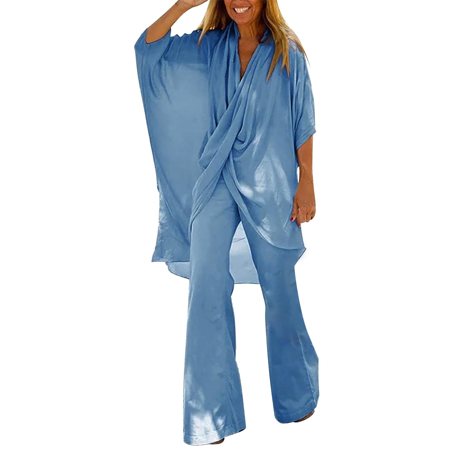 PMUYBHF Women Summer Outfits 2024 V Neck Backless Flared Sleeve